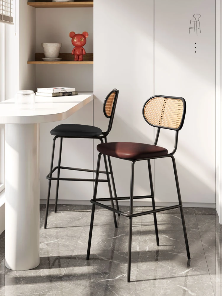 ヴィンテージスタイルのバースツール - モダンでシンプルな侘び寂びデザインのアイランドカウンター用ラタン製バースツール。自宅やレジカウンターに最適な高脚椅子!快適さとスタイルを兼ね備えた一品です。