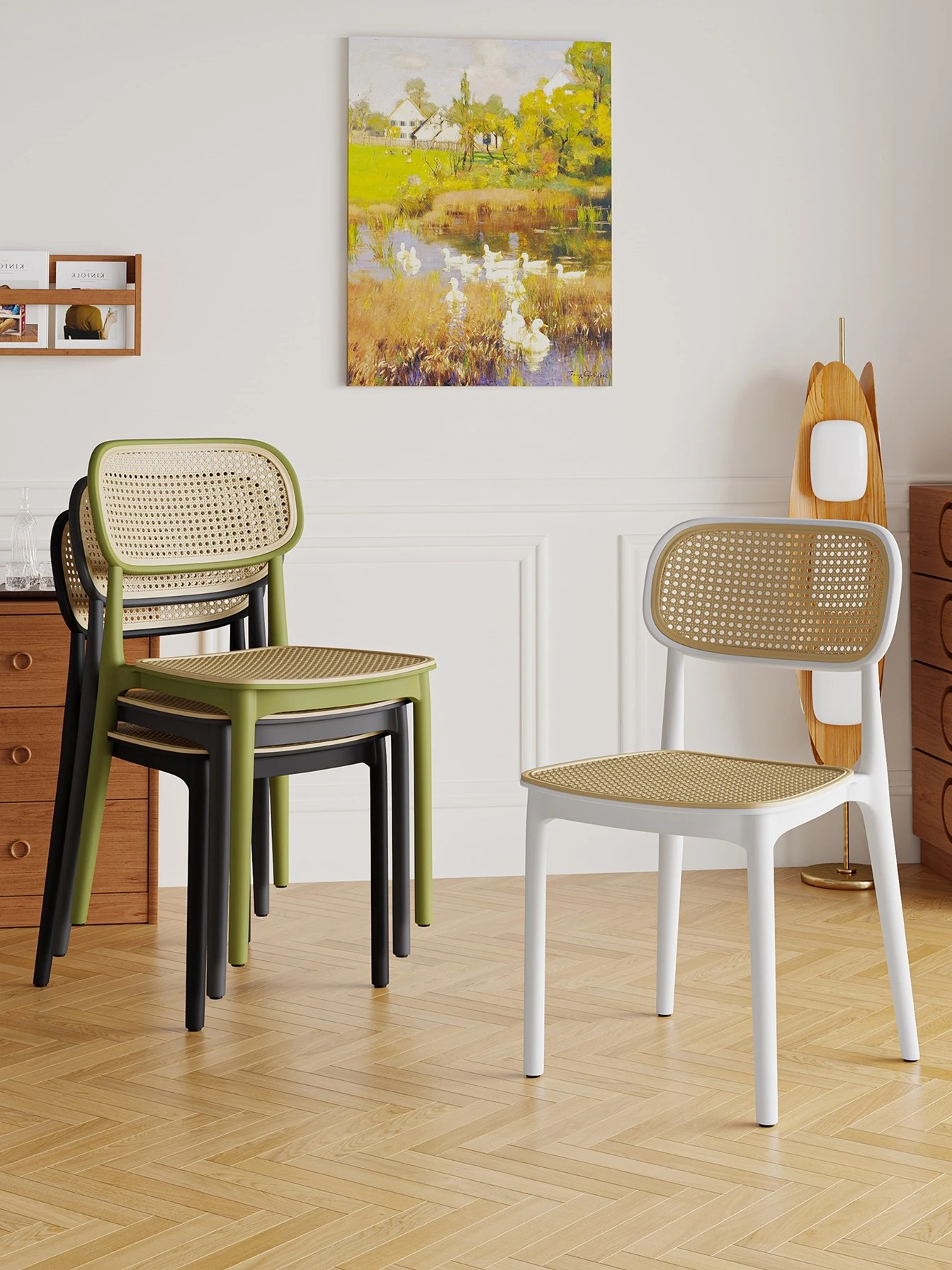 北欧風のラタン編みプラスチックチェア|アウトドア用・スタッキング可能|長時間座っても快適な背もたれ付き|シンプルでおしゃれなデザインのラタンチェア