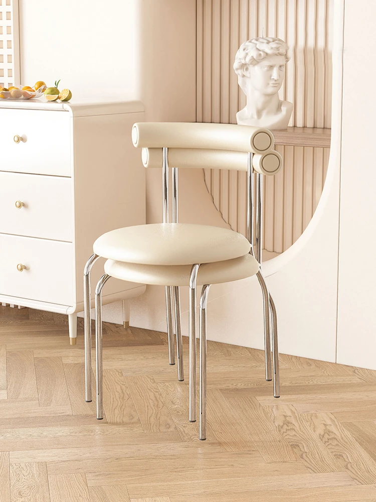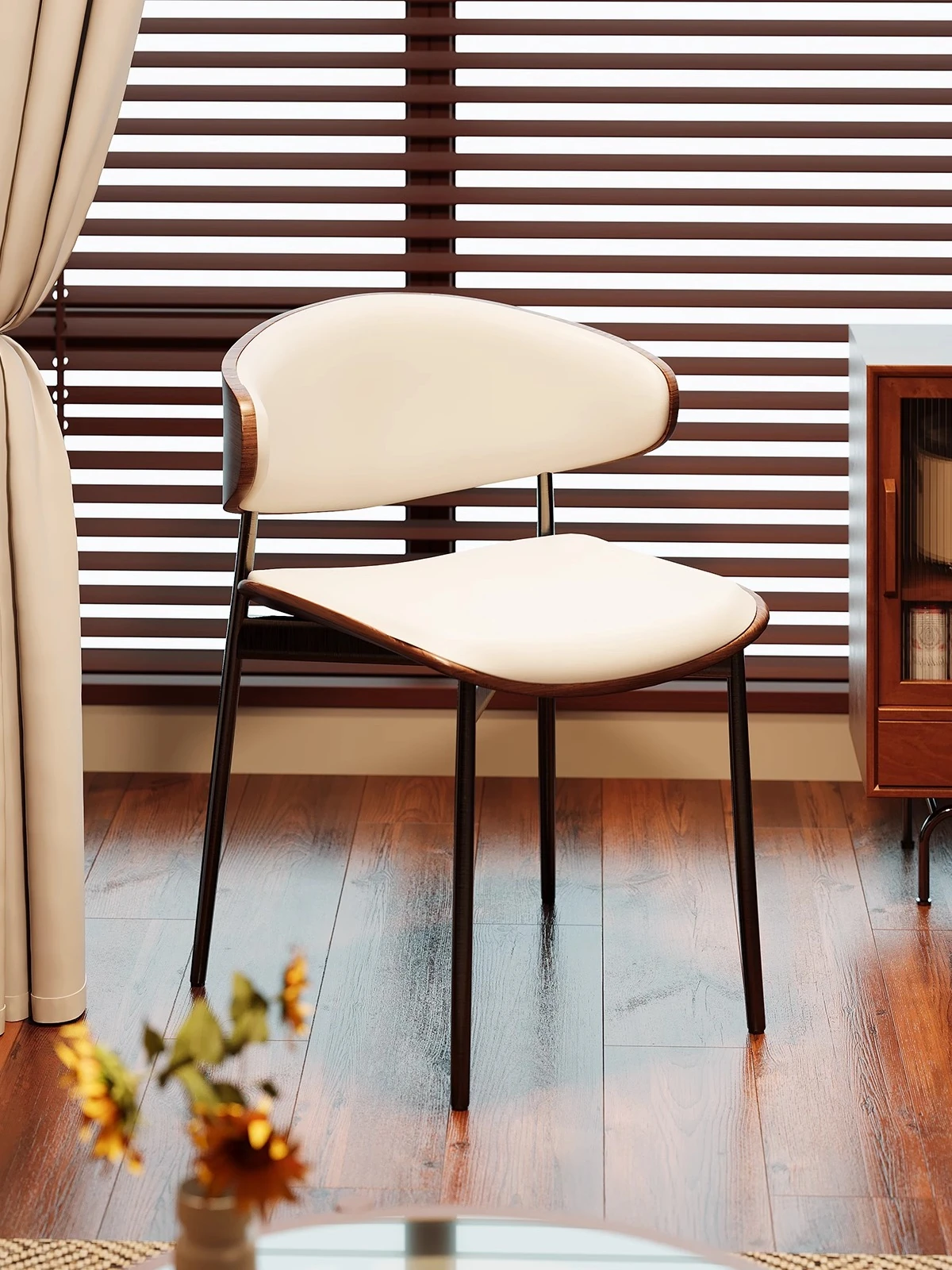 クリーミーな風合いのモダンミニマリストダイニングチェア - ソフトパッド付きバックレスト、家庭用やホテルレストランに最適!インスタ映えする民宿スタイルのダイニングチェア。快適さとスタイルを兼ね備えた一品です!