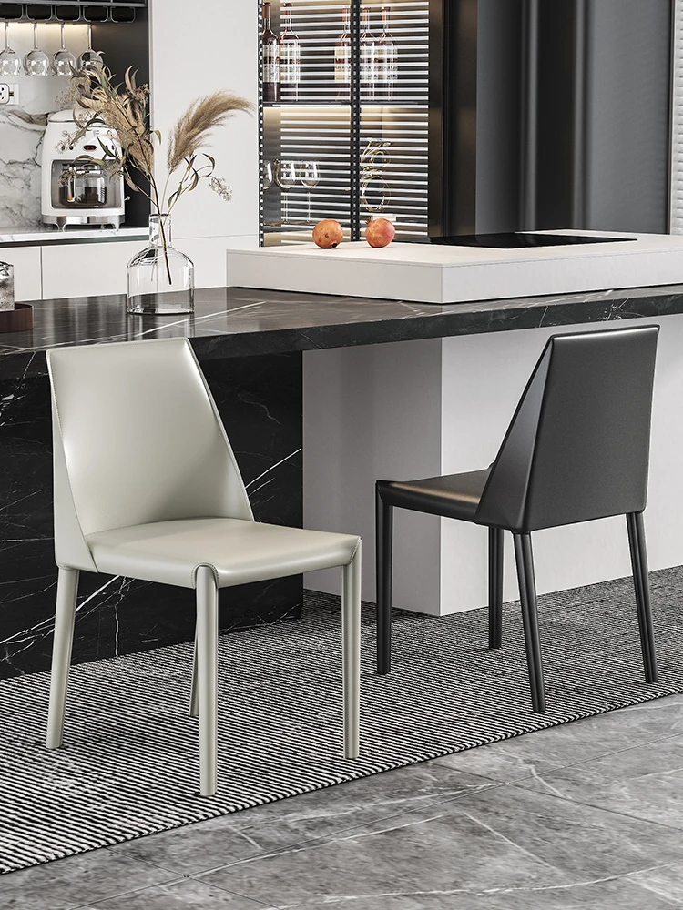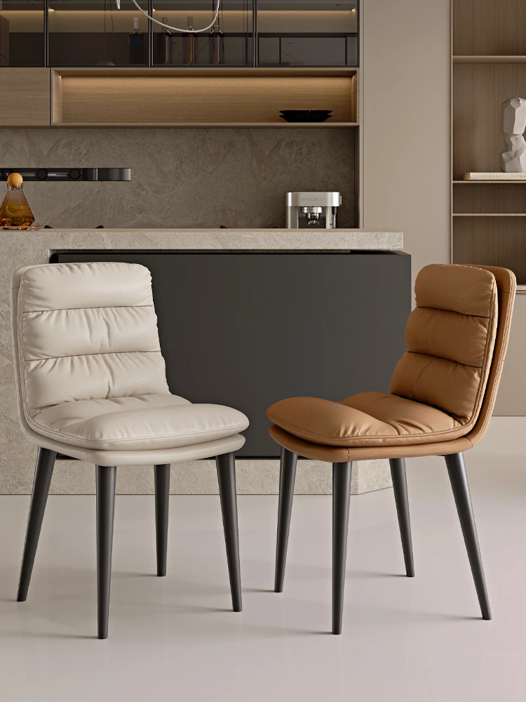 イタリアンスタイルの軽奢感溢れるダイニングチェア - 猫爪レザーソフトパック、快適な背もたれ付き!洗練されたデザインで、ダイニングルームやアイランドテーブルにぴったり。高級感あふれる一脚をお楽しみください。