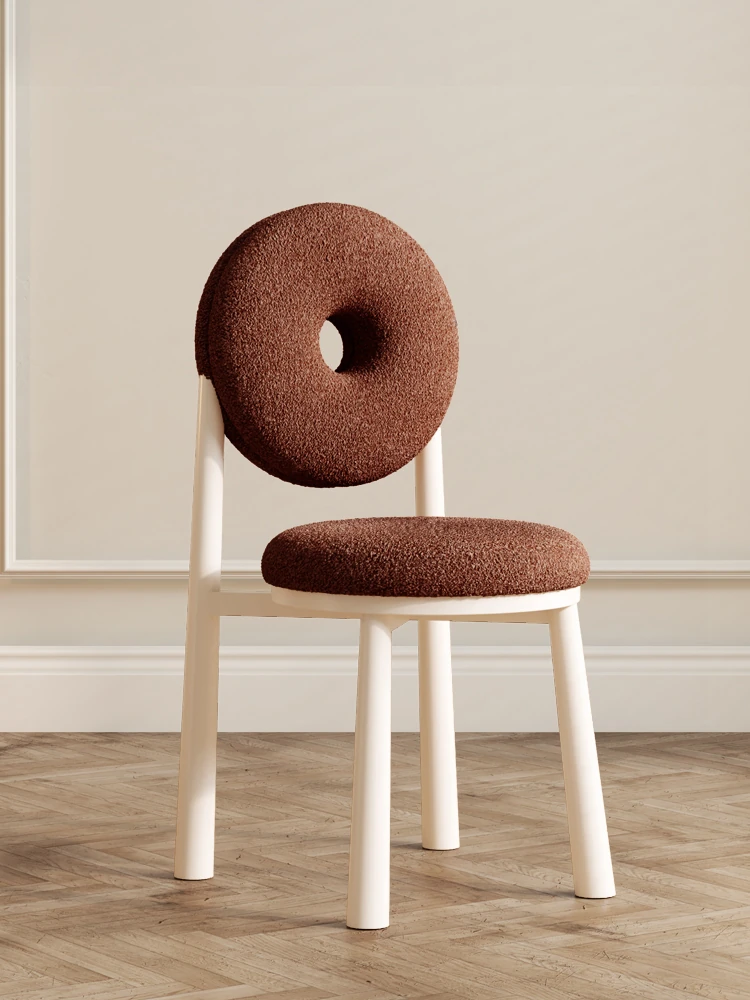 フレンチクリーム風ドーナツデザインのブラウンモダンミニマリストチェア|寝室やメイクアップに最適|柔らかなラムフリース背もたれ付き|おしゃれで快適な家庭用チェア