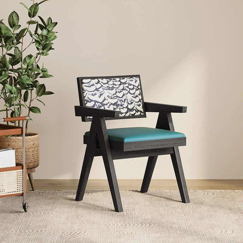 Blue leather cushion★Black solid wood chair frame("Source Factory 』)