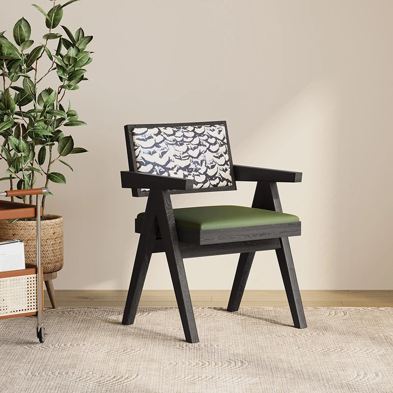 Green leather cushion★Black solid wood chair frame("Source Factory 』)