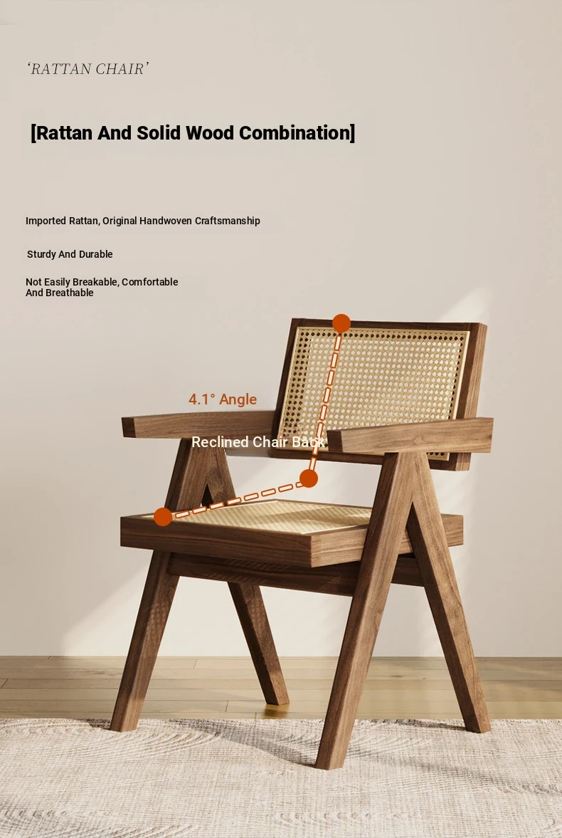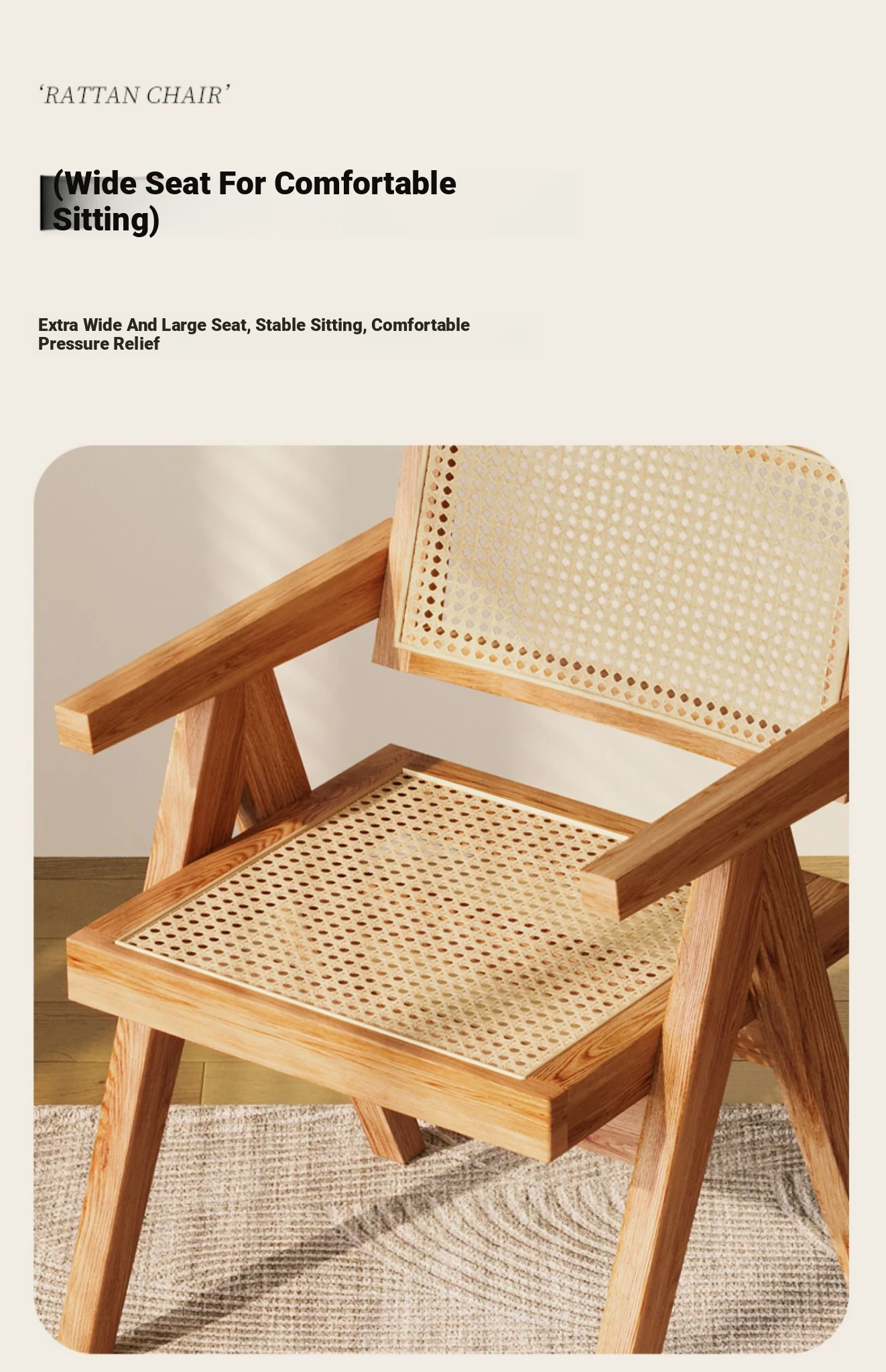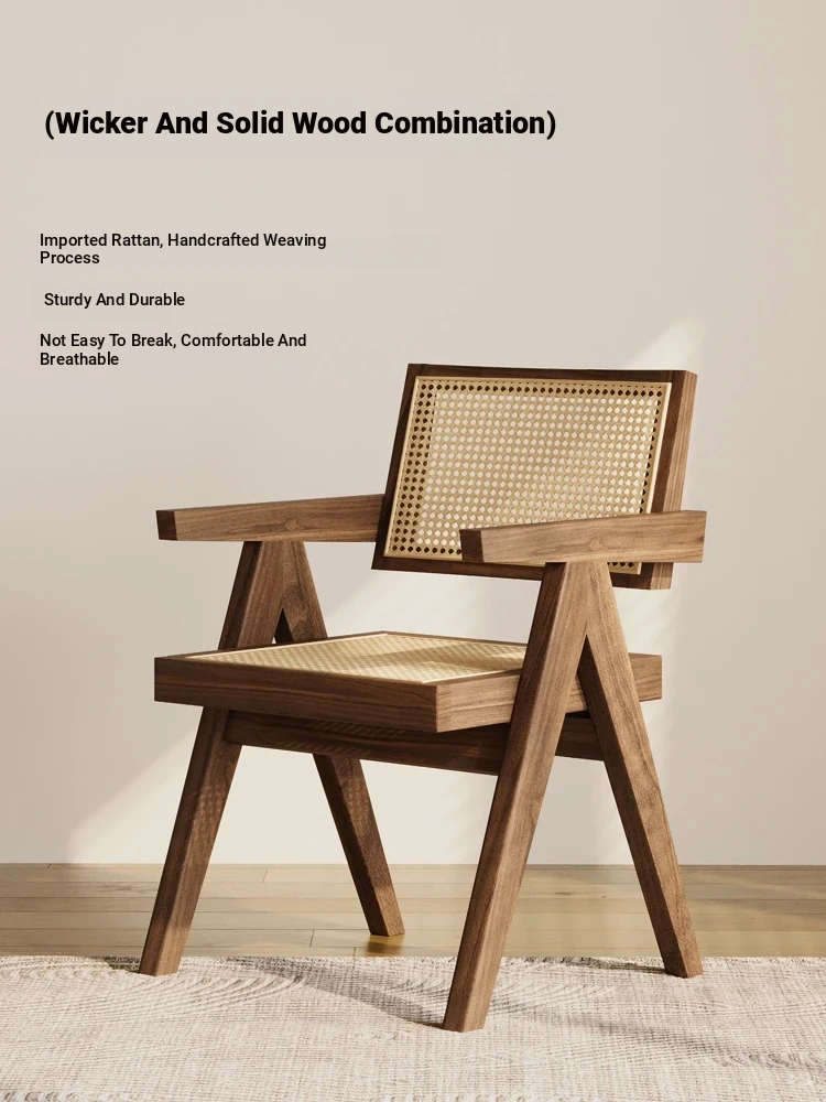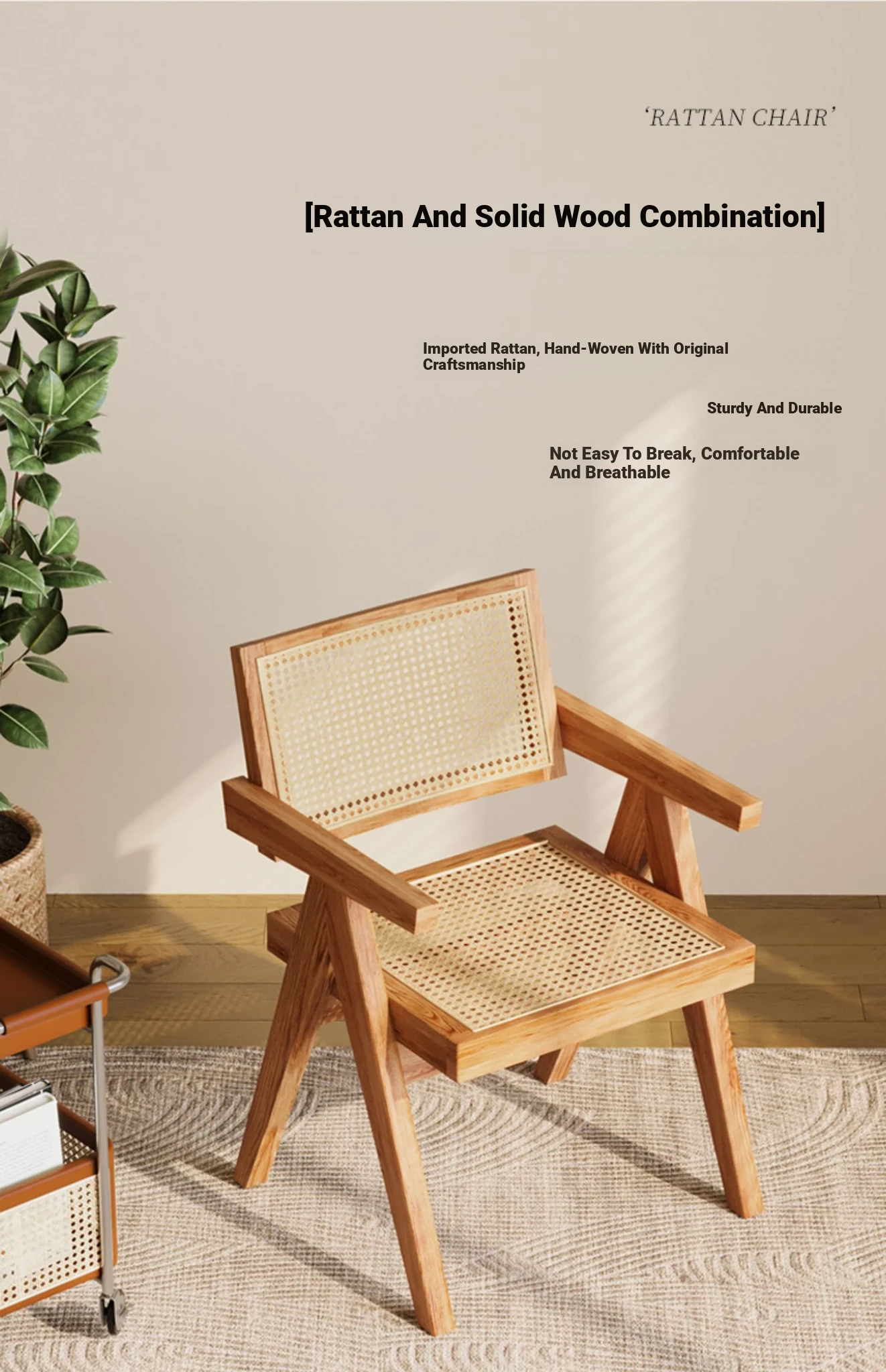 Vintage Rattan Dining Chair - Retro Solid Wood Backrest for Home, Balcony, and Leisure Tea Time - Trendy Chandigarh Chair for a Cozy Ambiance