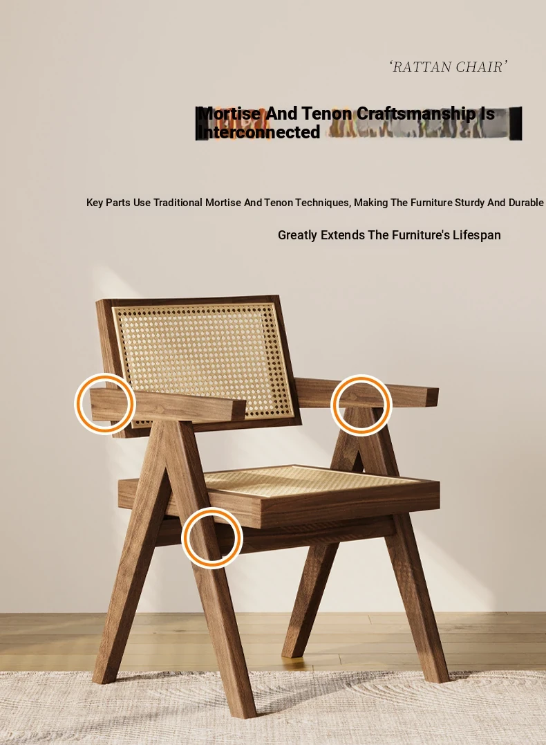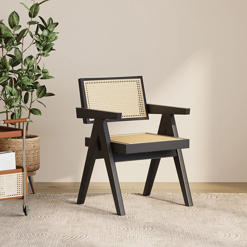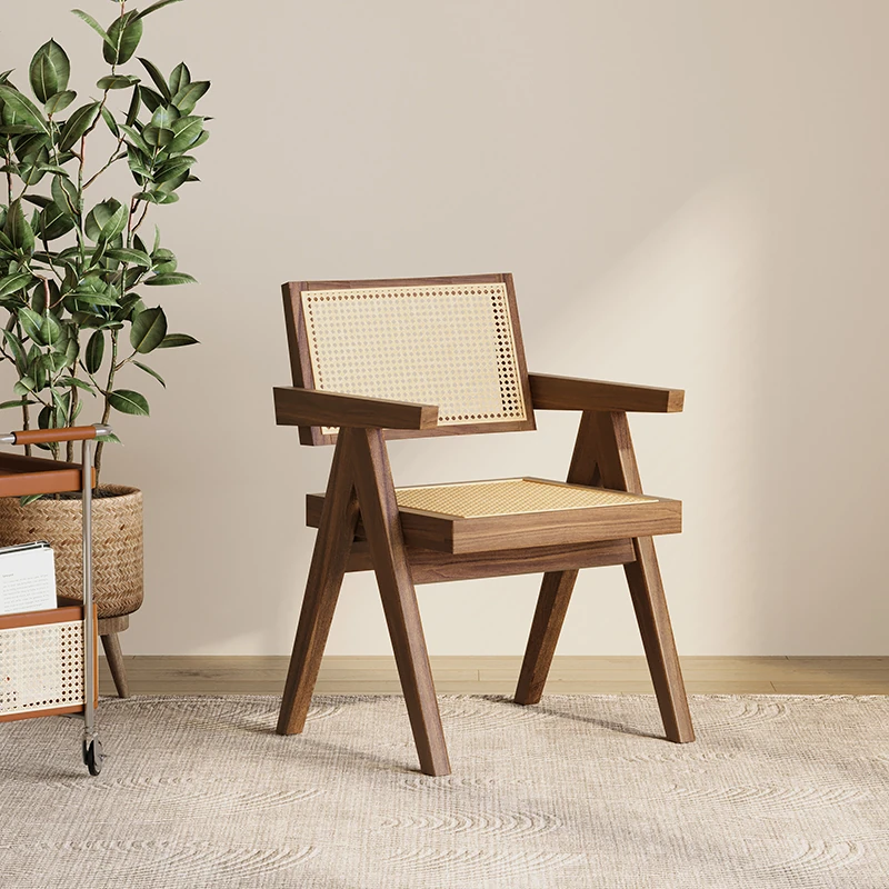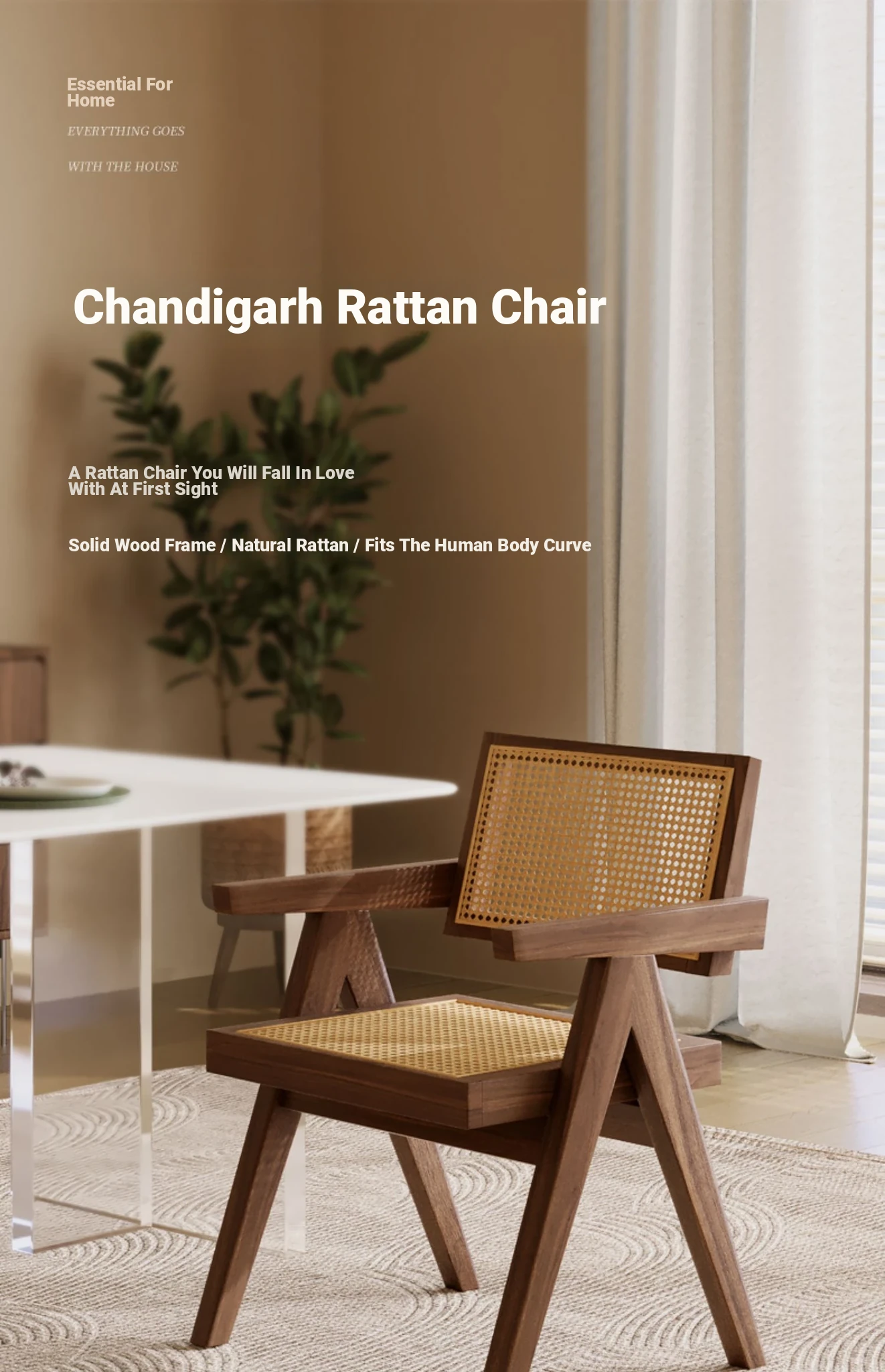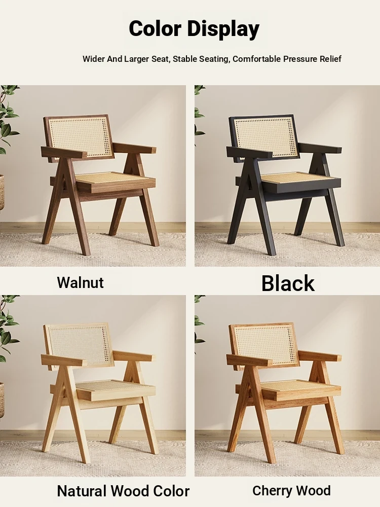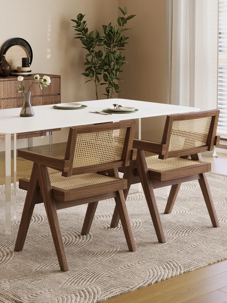 Vintage Rattan Dining Chair - Retro Solid Wood Backrest for Home, Balcony, and Leisure Tea Time - Trendy Chandigarh Chair for a Cozy Ambiance
