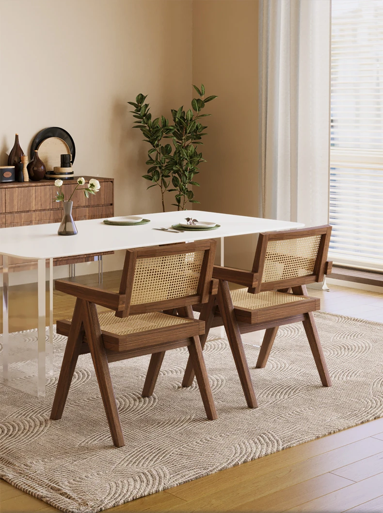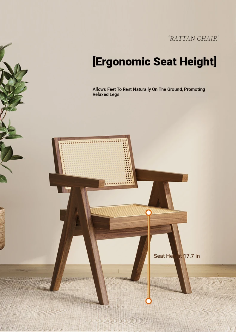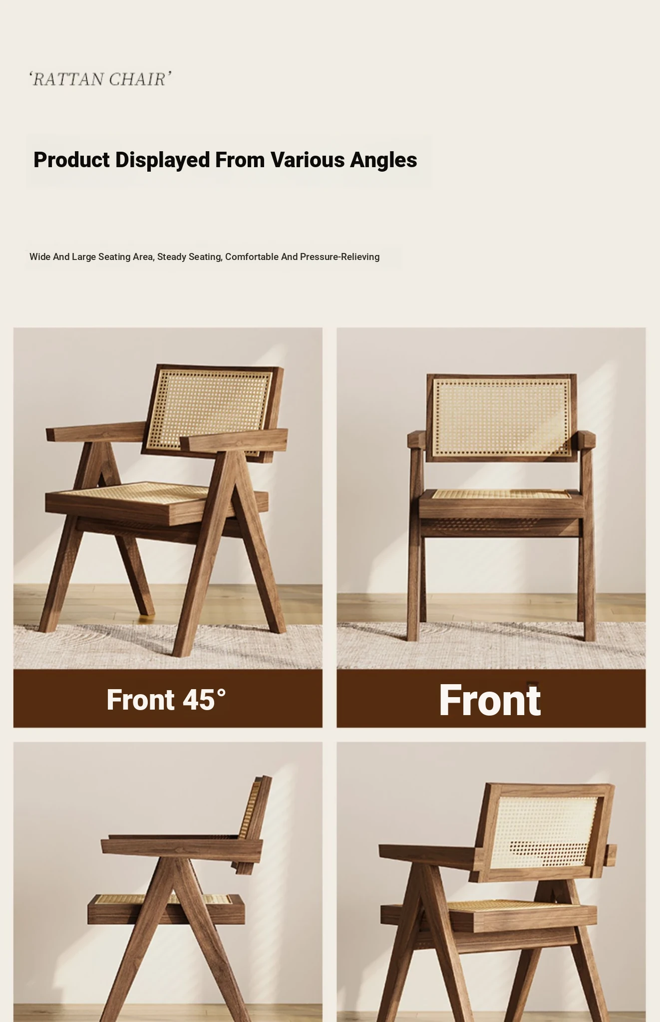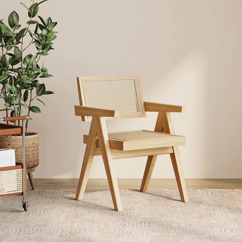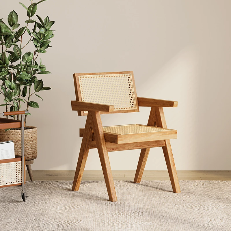 Vintage Rattan Dining Chair - Retro Solid Wood Backrest for Home, Balcony, and Leisure Tea Time - Trendy Chandigarh Chair for a Cozy Ambiance