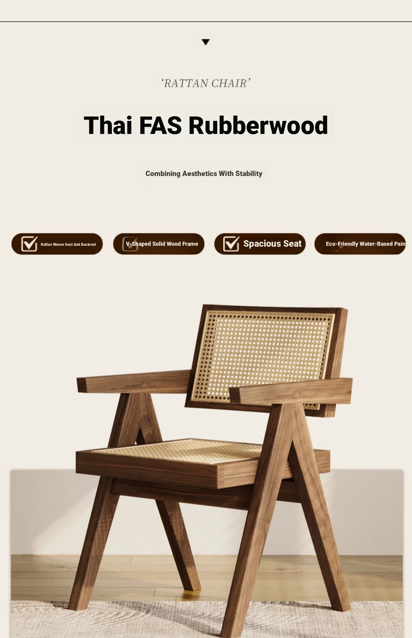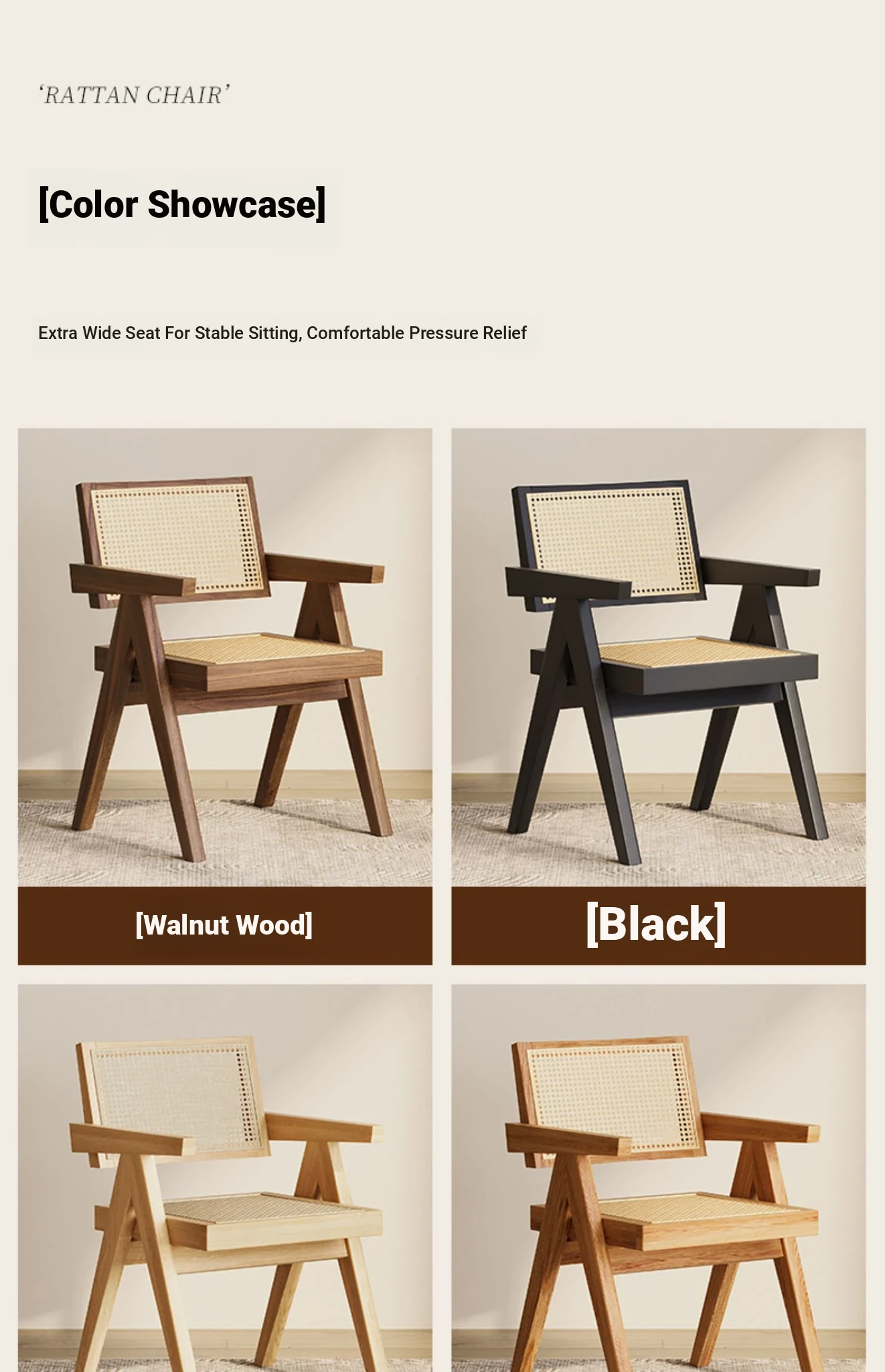 Rattan Walnut Color Solid Wood K Chair("Source Factory 』)