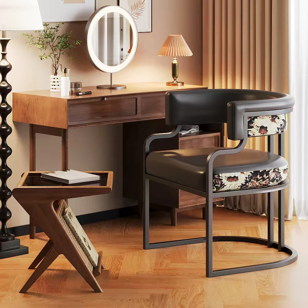 Vintage Style Makeup Chair - Elegant Black Dressing Chair for Home Use, Perfect for Girls' Bedrooms and Nail Salons, Ideal Customer Seating with a Touch of Luxury