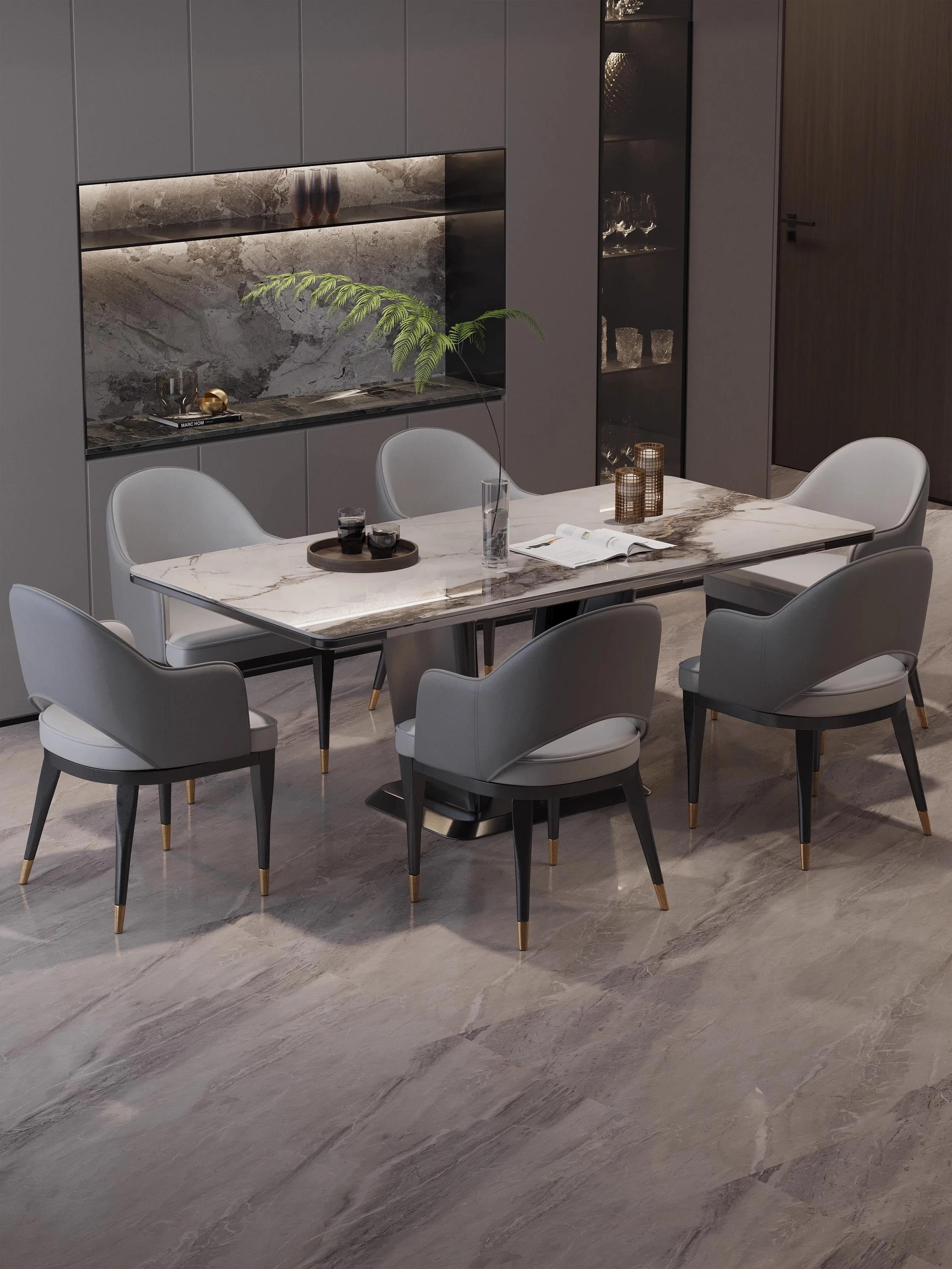北欧風 おしゃれな軽奢ダイニングチェア 家庭用クリームカラーのデスク用背もたれ付きスツール 高級感あふれるデザイン 人気のラグジュアリーなロックボードダイニングテーブル用椅子