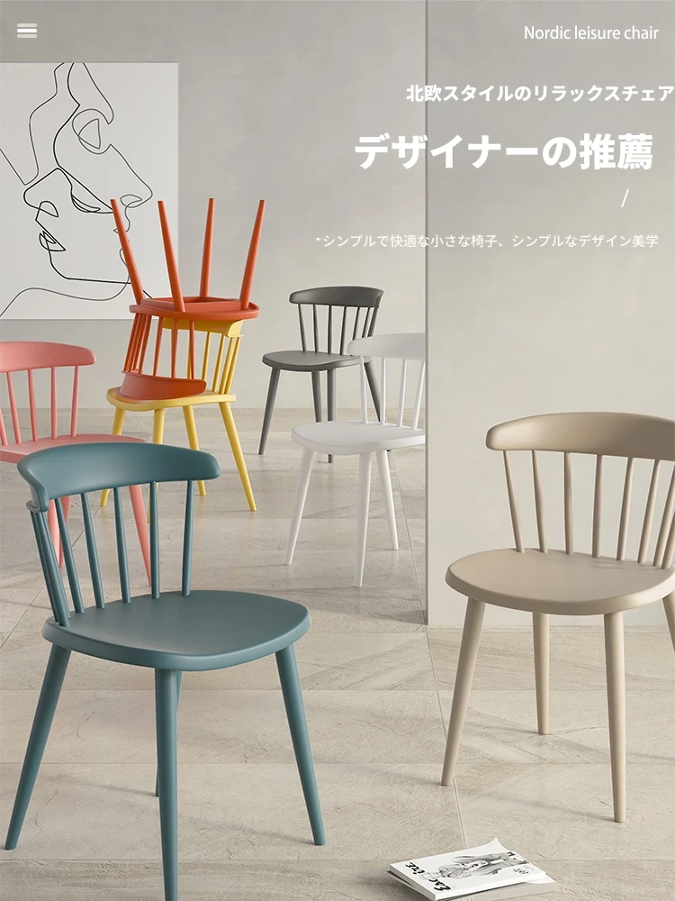 北欧風ウィンザー風ダイニングチェア|モダンでシンプルなプラスチック製背もたれ|カフェやティーショップに最適なリラックスチェア|家庭用・商業用どちらにもぴったり!